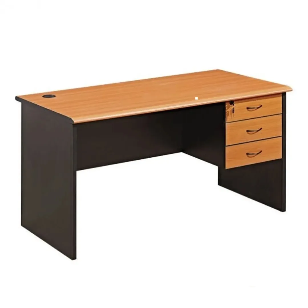 Bureau professionnel compact avec 3 tiroirs intégré à droite dont 1 tiroir supérieur avec serrure de sécurité, idéal pour postes de travail individuels, administration ou accueil.